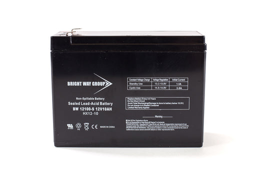 The Bright Way Group BW 12100 S F2 is a 12-volt 10Ah sealed lead-acid battery that is brand new and ready to replace your existing battery (regardl...