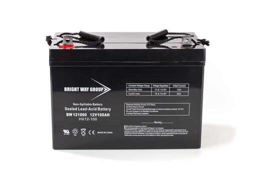 The Bright Way Group BW 121000 Z is a 12-volt 100Ah sealed lead-acid battery that is brand new and ready to replace your existing battery (regardle...