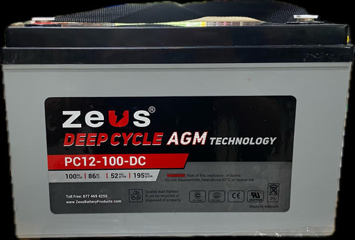 The Zeus Battery PC12-100-DC is a 12-volt 100Ah sealed lead-acid battery that is brand new and ready to replace your existing battery (regardless o...