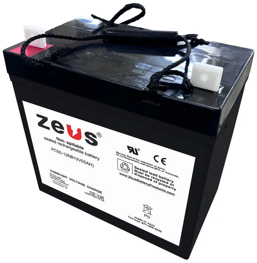 The Zeus Battery PC55-12NB is a 12-volt 55Ah sealed lead-acid battery that is brand new and ready to replace your existing battery (regardless of t...