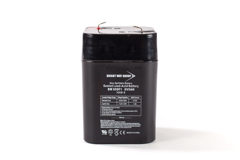 The Bright Way Group BW 650F is a 6-volt 5Ah sealed lead-acid battery that is brand new and ready to replace your existing battery (regardless of the original manufacturer).