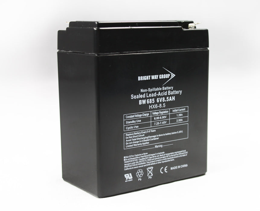 The Bright Way Group BW 685 is a 6-volt 8.5Ah sealed lead-acid battery that is brand new and ready to replace your existing battery (regardless of the original manufacturer).