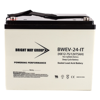 The Bright Way Group BW EV 24 IT DC is a 12-volt 75Ah sealed lead-acid battery that is brand new and ready to replace your existing battery (regardless of the original manufacturer).