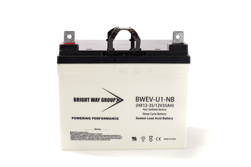 The Bright Way Group BW EV U1 NB is a 12-volt 35Ah sealed lead-acid battery that is brand new and ready to replace your existing battery (regardless of the original manufacturer).