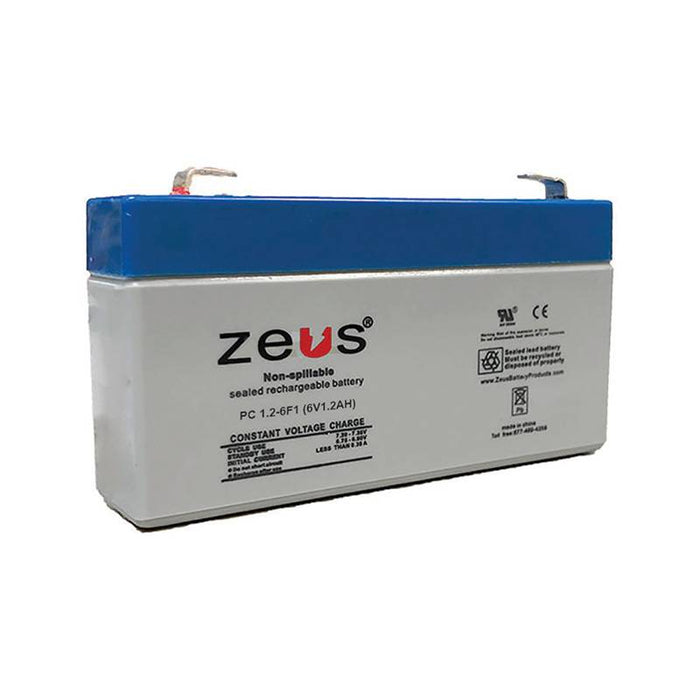The Zeus Battery PC1.2-6F1 is a 6-volt 1.2Ah sealed lead-acid battery that is brand new and ready to replace your existing battery (regardless of the original manufacturer).