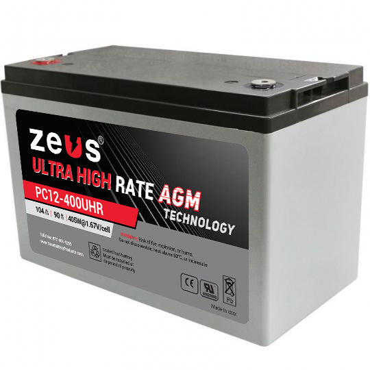 The Zeus Battery PC12-400UHR is a 12-volt 104Ah sealed lead-acid battery that is brand new and ready to replace your existing battery (regardless of the original manufacturer).
