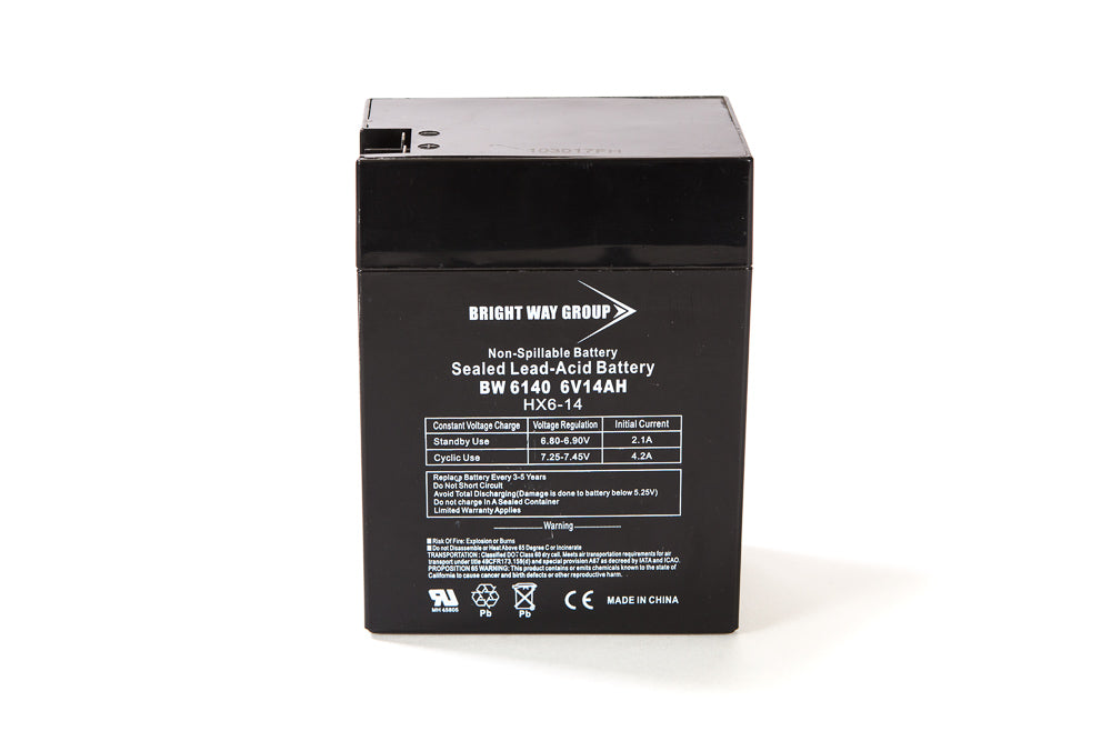The Bright Way Group BW 6140 is a 6-volt 14Ah sealed lead-acid battery that is brand new and ready to replace your existing battery (regardless of the original manufacturer).